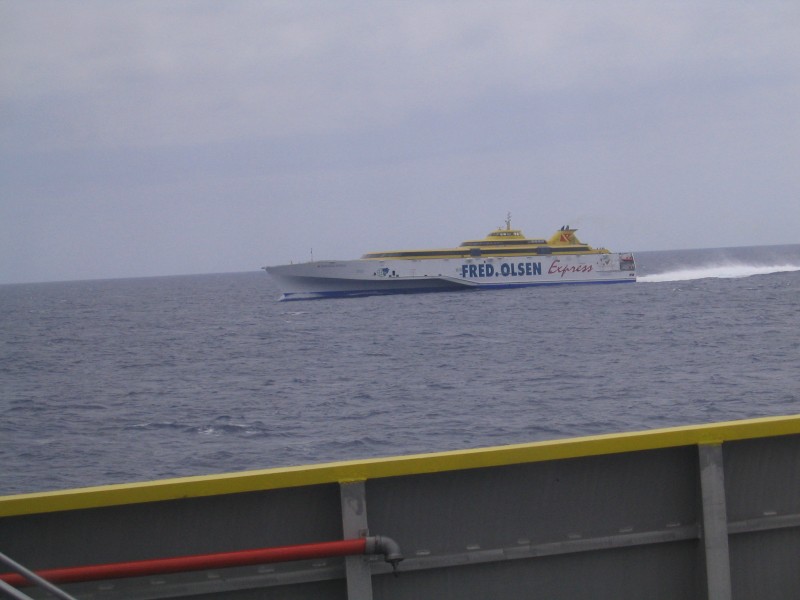 Allein, also ohne Frauen Überfahrt nach ElHiero. FredOlsen ist schnell, aber nicht billig.
