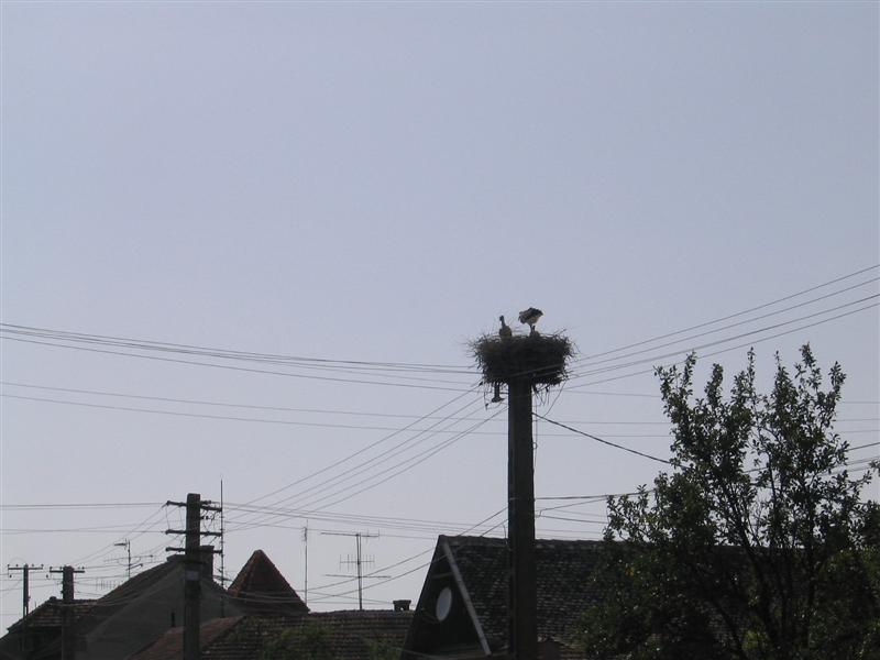 Hier gibt es Störche ohne Ende. Ob die den Nestbauort da oben zwischen den Stromleitungen gut gewählt haben?