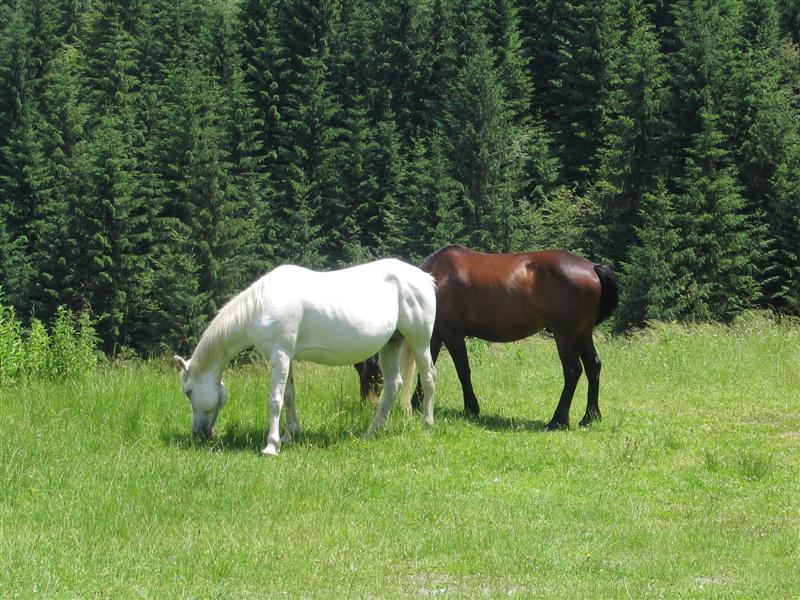 Die Pferde hier laufen frei rum, wie in den Alpen die Kühe. Etwas scheu sind sie allerdings.