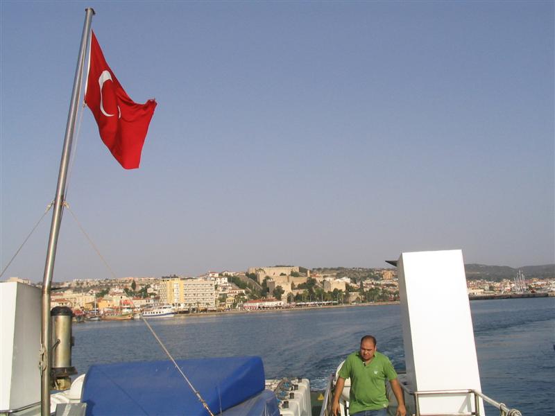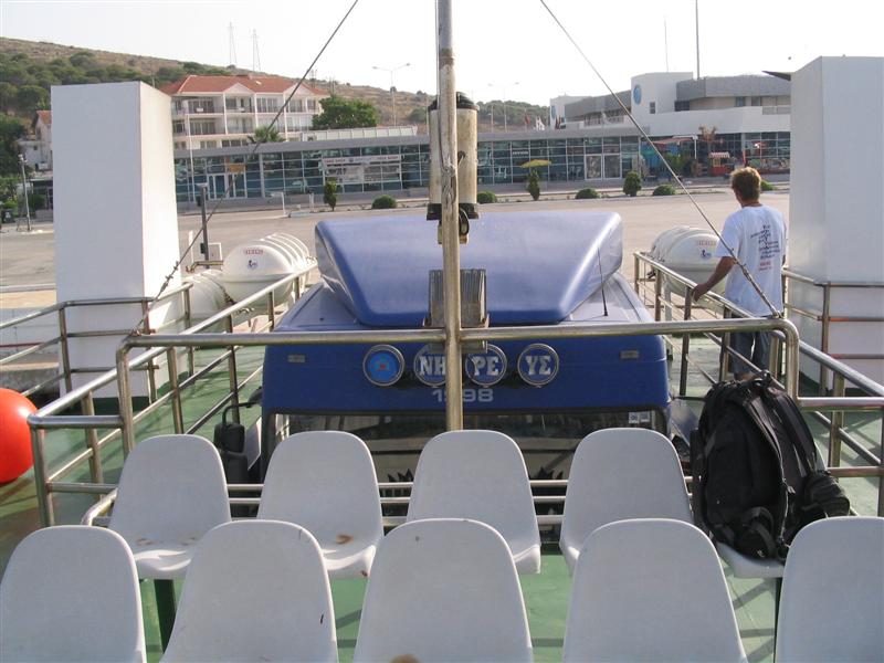Auf dem Schiff sind fast nur Tagestouristen, die eigentlich auf Chios Urlaub machen.