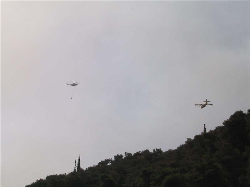 ... mit Löschflugzeugen und -hubschraubern.