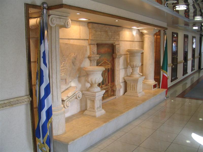Der Eingangskorridor auf der Ionian Queen. Recht übig dekoriert!