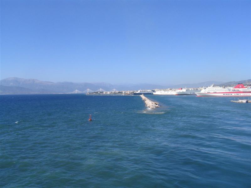 Die Ionion Queen ist etwas flügellahm. Nach 90km wirft der Hauptantrieb das Handtuch. Na prima. Mit 20km/h zurück nach Patras....